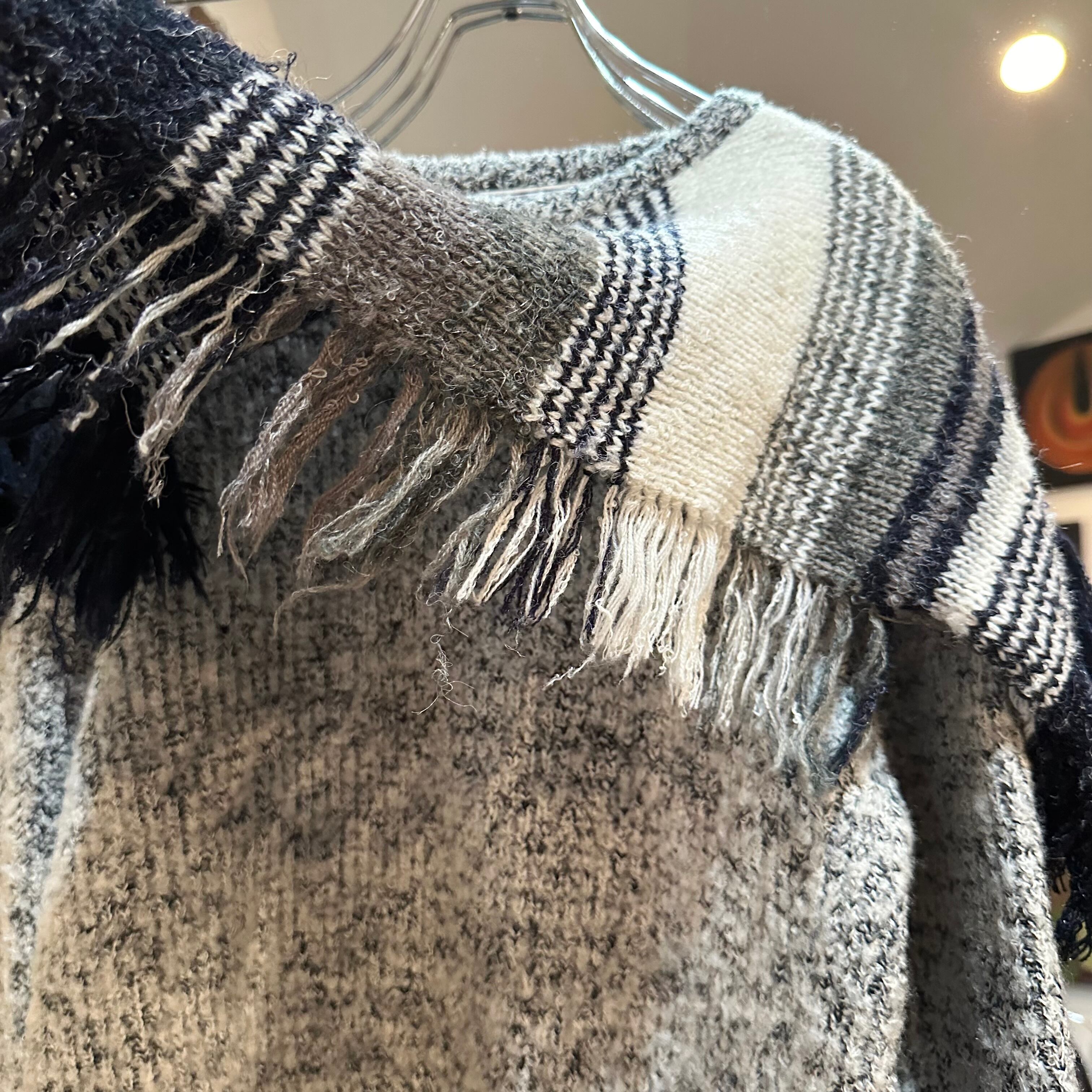 Mariea Kimのストールをドッキングした様なデザインがイケてるセーターです!