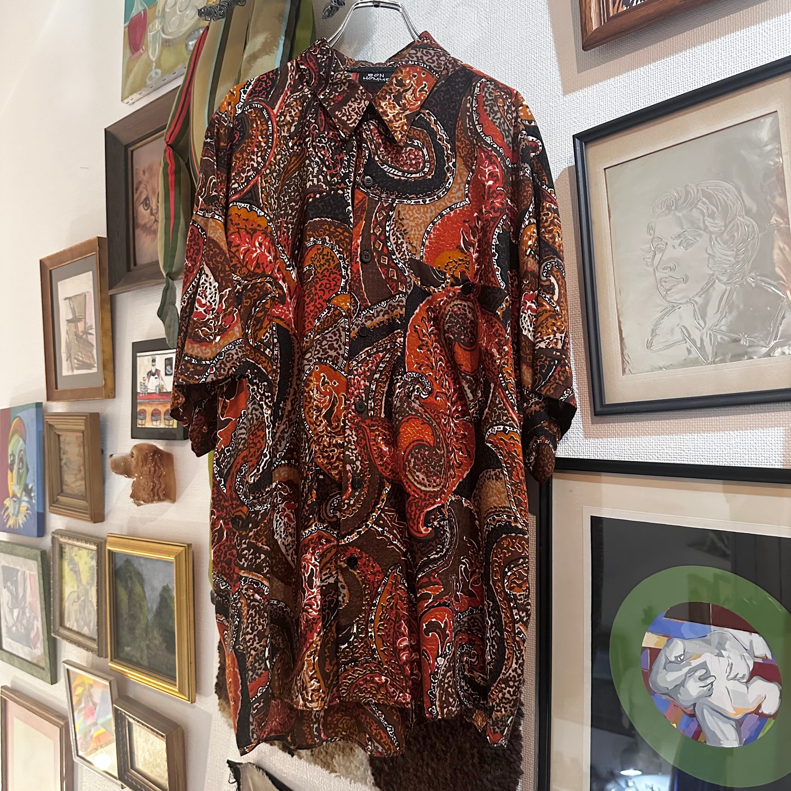ペイズリーとボタニカルが融合したような総柄がイケてるレーヨンシャツです!