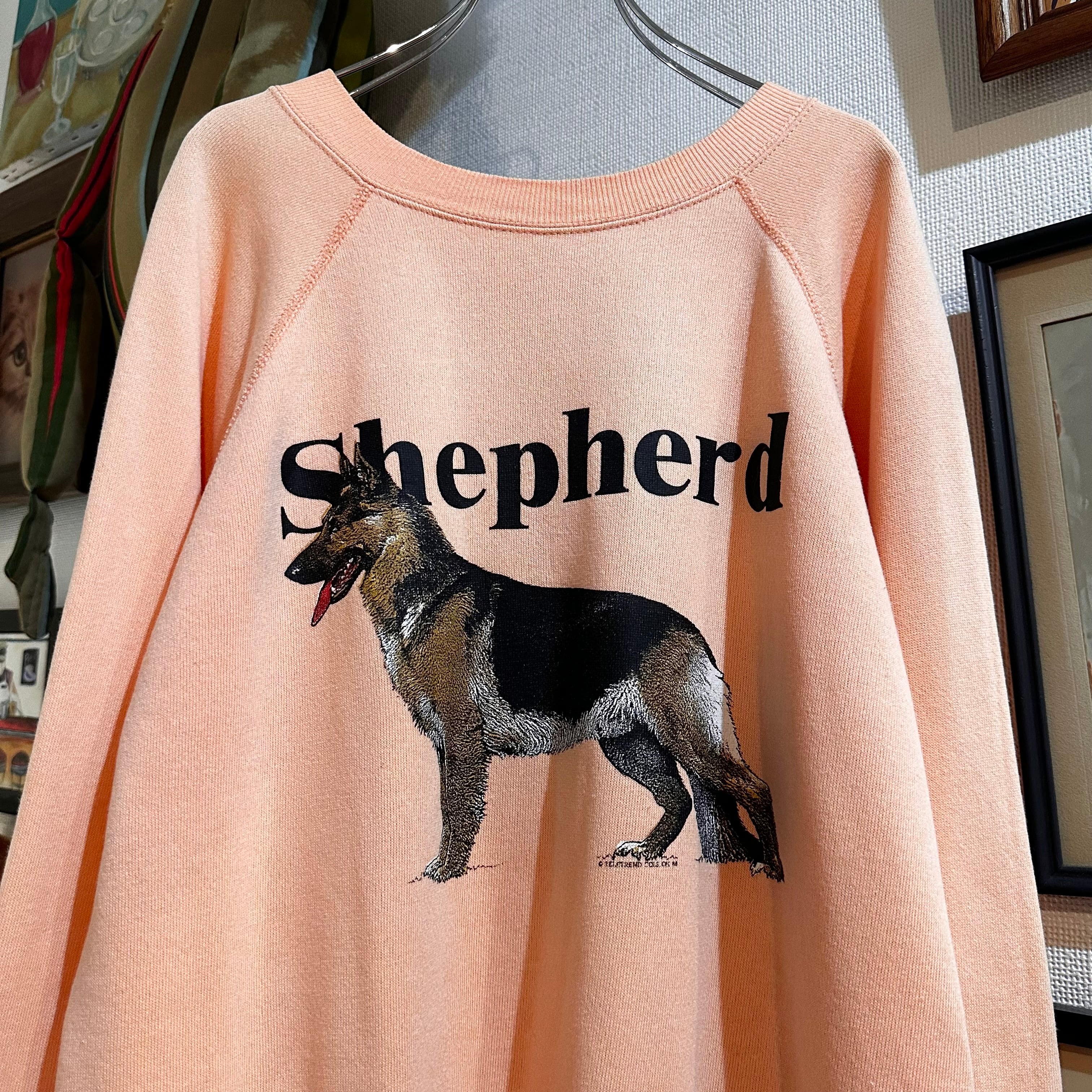 オレンジとピンクを混ぜた様な絶妙な色合いが可愛いシェパードの全身プリント犬スウェットです!