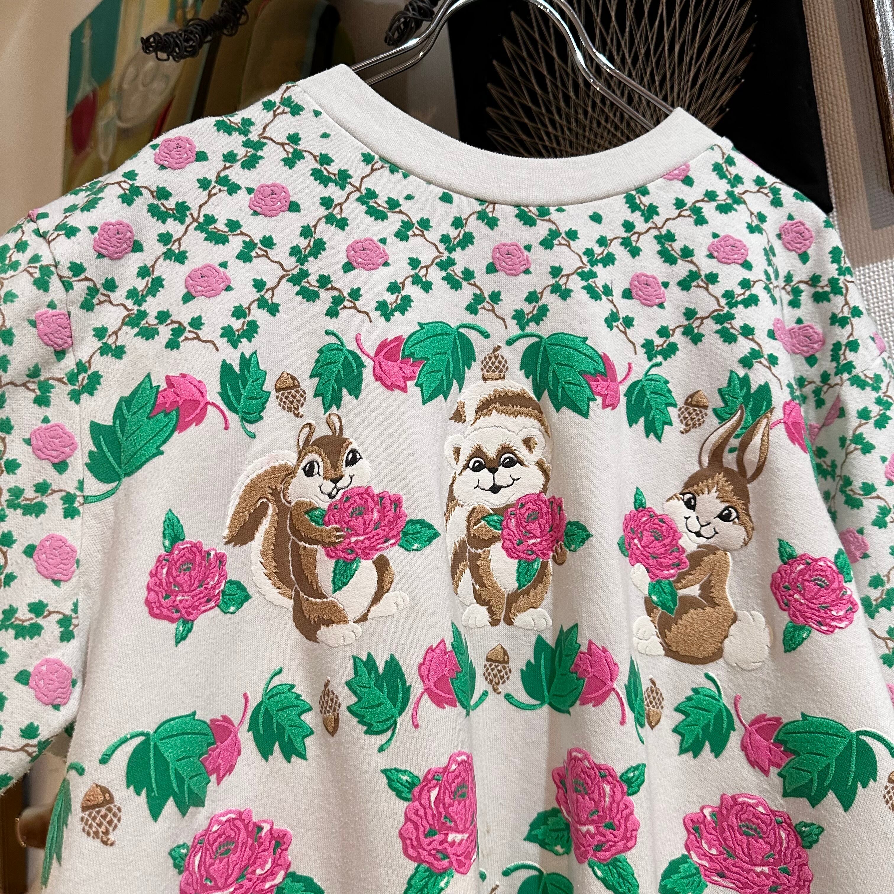 80's アニマル×花 発泡プリント スウェット