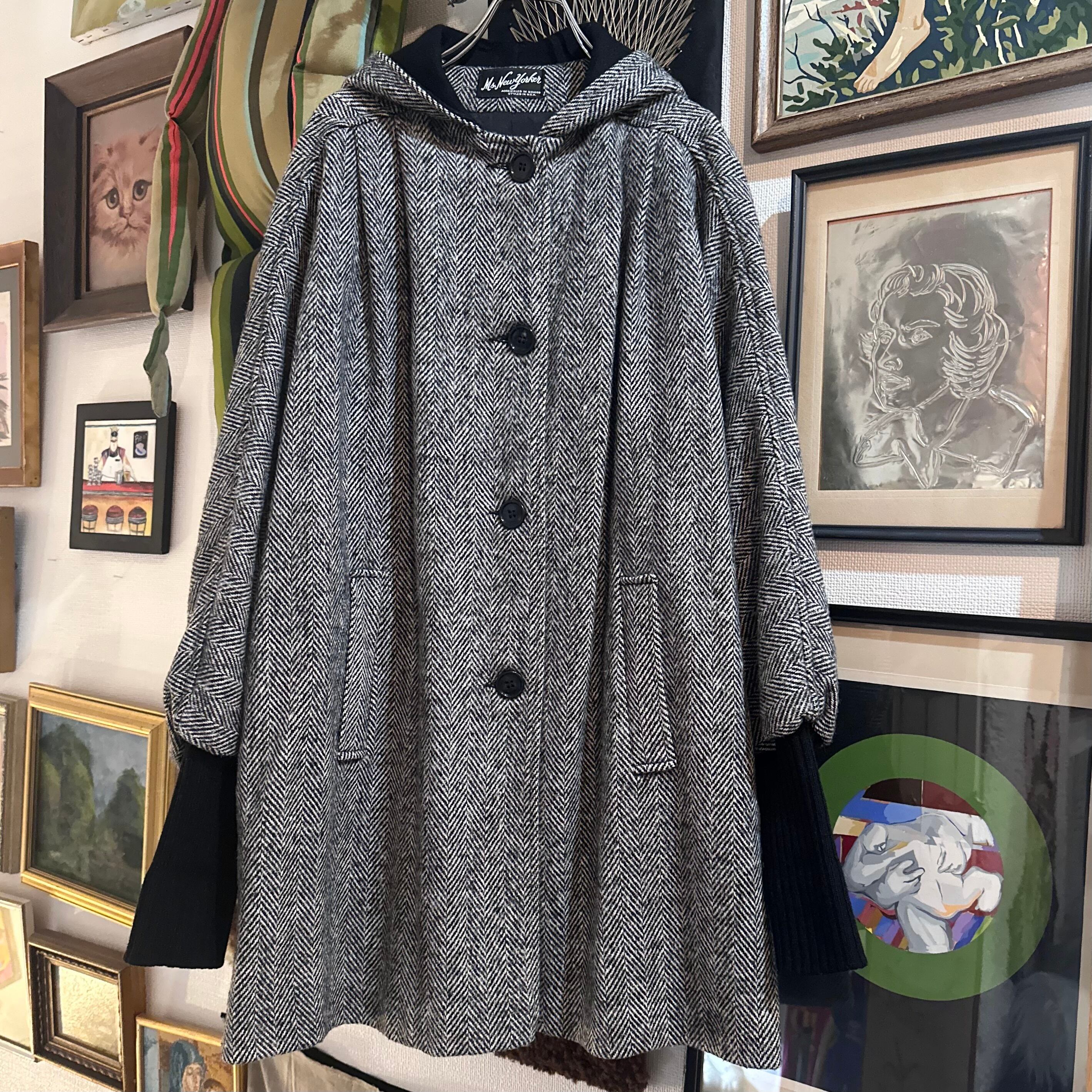 綺麗なシルエットのフードと袖の長めのリブが可愛いツイードコートです!